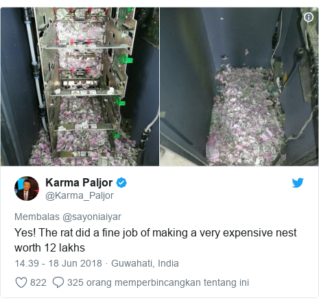 Dalam komentarnya, Karma Paljor mengatakan: Ya! Tikus melakukan pekerjaan yang hebat membuat sarang senilai 12 lakh (250 juta rupiah).